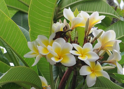 The Balinese use of flowers is high and innovative. Frangipani is everywhere: both real and in paintings, and define Bali almost. They adorn steps in a neat arrangement, or women’s hair, or sometimes playfully tucked behind the ear of statues, or even left “accidentally” around on the pillow, in the shower area or on the towels!